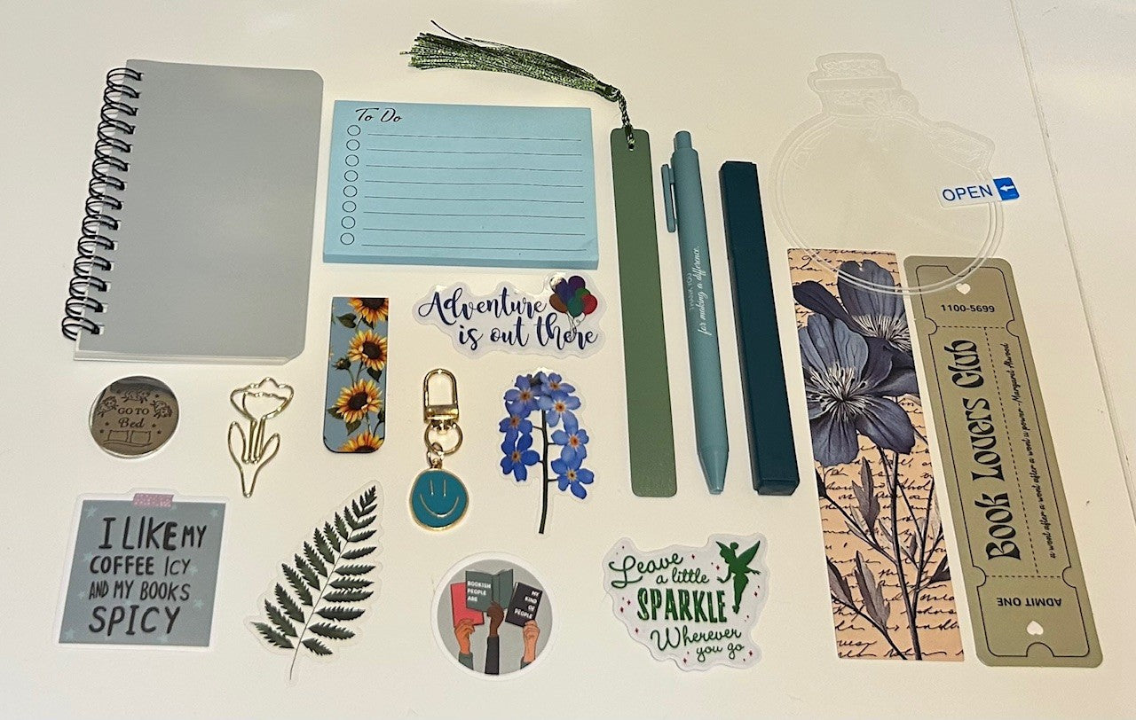 A cute mini bundle of bookish items all wrapped up with some self-love and positivity. Your bundle comes in either Pinks & Purples, or Blues & Greens.